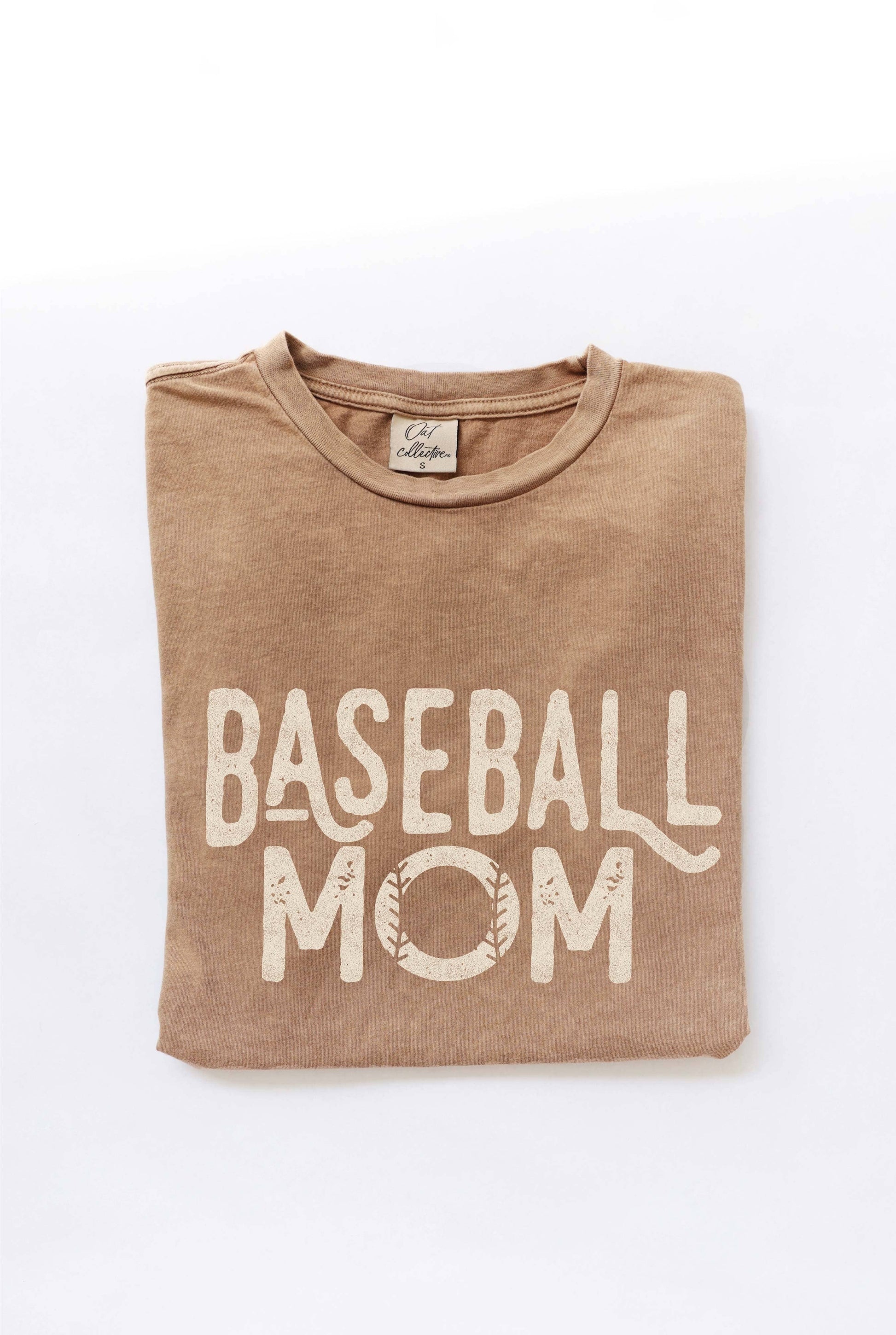 BASEBALL MOM Mineral Washed Graphic Top: TOAST / M